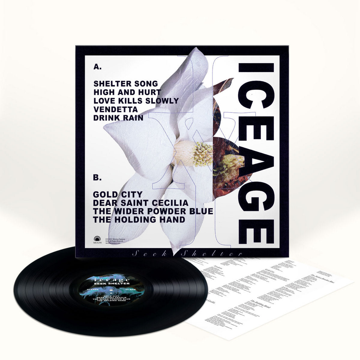A decade on from their first record, Iceage continue to harness their lives together through music. This journey, in music and life, has never progressed in a linear fashion. Seek Shelter — Iceage’s fifth LP and first for Mexican Summer — is proof that their lives are still happening through their music, and that they remain determined to harness it. Enrolling Sonic Boom (Pete Kember of Spacemen 3) to produce, Seek Shelter sees Iceage’s propulsive momentum pushing them in new, expansive, ecstatic directions. The sound of an emotional core unwound, Seek Shelter radiates warmth and a profound desire for salvation in a world that’s spinning further and further out of control.